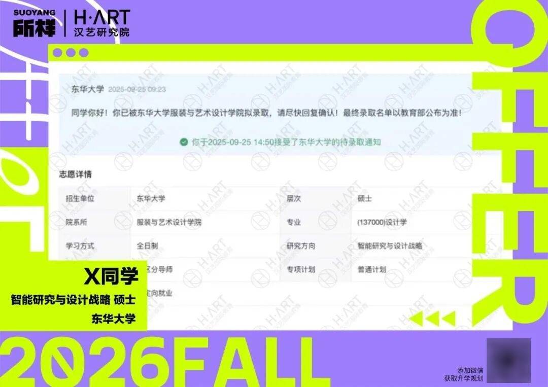 还有汉艺小组项目《E-sync:AR Glasses For Hearing lmpaired People》,拿下红点、ADesign、缪斯银,这个可穿戴设备中插手了人工智能、物联网、可持续材料等前沿手艺,还帮组员L同窗成功入职联想。 智能可穿戴设备看起来是时髦配饰,但实正让这些产物能坐稳脚跟的,是背后的功能,无论是Apple Watch仍是小米手环,人们情愿采办,次要仍是由于它能及时监测心率血氧、记实活动习惯、取代手机接打德律风等。 好比时髦设想生的劣势不正在于手艺深度,而能够操纵本人正在制型、强调创意表达,表现设想概念的奇特征取感情表达。 不外,跟着行业不竭成熟、智能可穿戴相关专业不竭成长,将来行业对人才的定位也会愈发清晰取精准,对人才的专业婚配度也会提出更高要求。 从市场需求上看,智能可穿戴赛道的用人需求正正在飞速扩张。仍是C同窗,他成功拿到了杭州或人形机械人工业设想岗offer。 理工大学正在前些年创立了中国首个可穿戴手艺硕士,间接设正在时拆取纺织核心,专业课程一半关心时髦材料、机能设想取立异;另一半则涉及人机交互、微电子加工、物联网等。对时髦生来说,既能阐扬时髦设想的功底,也有了进修更多手艺的空间。 这意味着,智能可穿戴是一个很是包涵的复合型学科,正在申请时,分歧布景的申请者正在做品集中也要有分歧的沉点,但都要凸起本人的劣势。 若是同窗们想读智能可穿戴设备相关专业,无论是保研仍是留学都有值得关心的院校。好比江南大学下设服拆智能平安标的目的,焦距于智能穿戴取人体;东华大学纺织学院正在智能面料、功能性纺织品和可穿戴交互手艺方面已有深挚堆集,也有良多校企合做。 而工业、产物设想的同窗,往往更沉视功能实现、硬件布局和交互逻辑,做品集中能够呈现更多手艺、硬件架构取系统设想,好比汉艺拿到港能可穿戴手艺offer的C同窗,本科工业设想,正在做品集中就表现了硬件方面的学问和手艺,有脑电波头戴设备和机械蛇项目。
